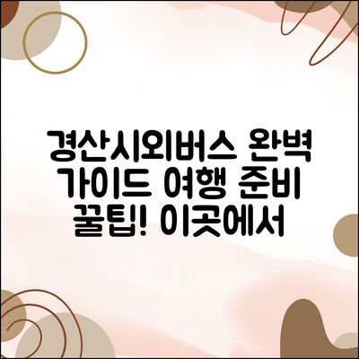 경산시외버스정류장을 이용하기 전, 주변 편의시설에 대한 정보가 필요합니다. 이 가이드를 참고하여 보다 편리한 여행을 준비하세요.